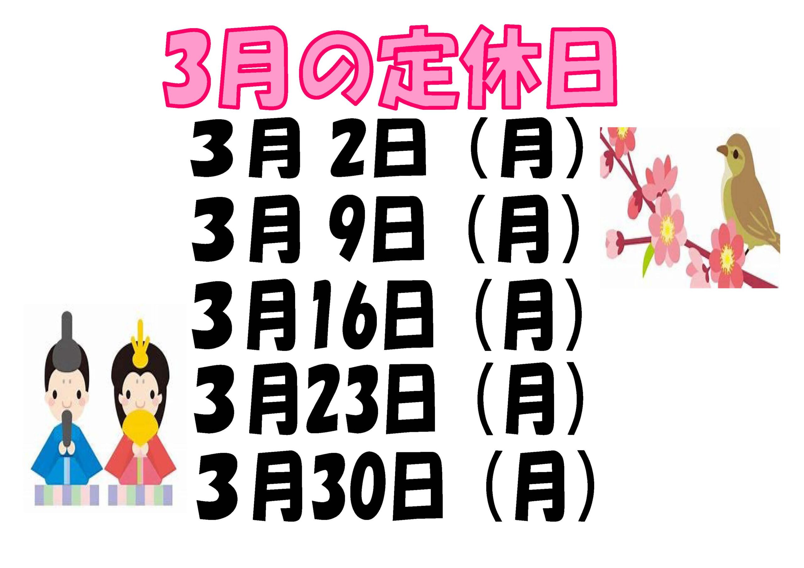 3月の定休について